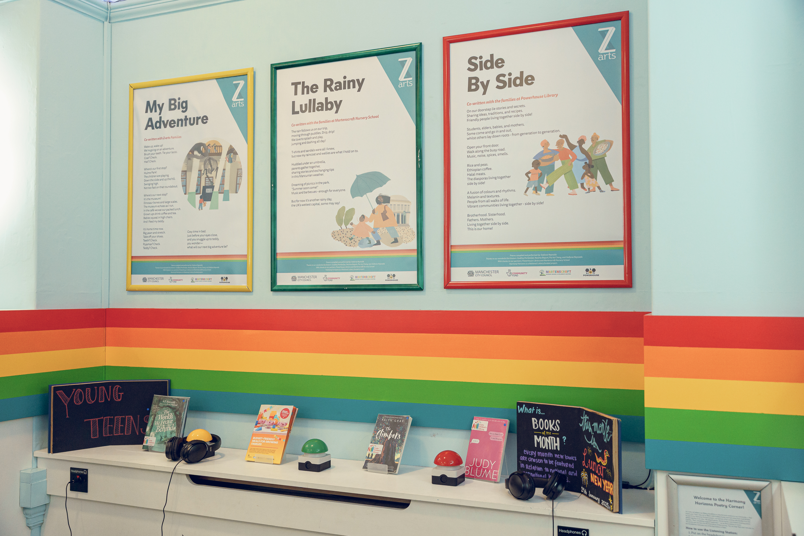 The creative outcomes — original poems and music inspired by each group — have been brought to life in a brand-new interactive listening station at Z-arts’ children’s library. Visitors can now hear the voices, laughter, and stories of our local communities at the press of a button!